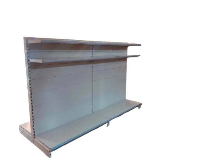 This Tegometall wall shelving unit is a versatile, modular shelving solution designed for professional retail environments. The system consists of robust steel uprights, a smooth back panel, and adjustable flat shelves, making it suitable for a wide range of merchandise and store layouts.